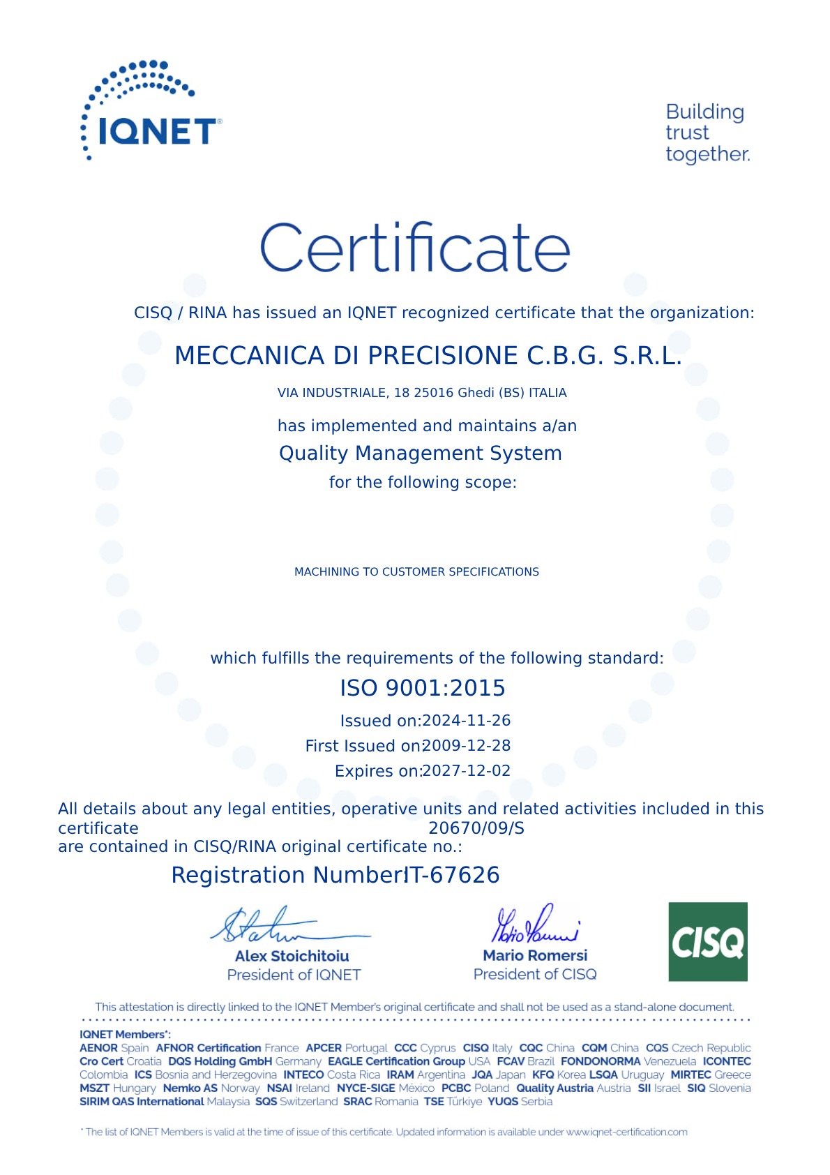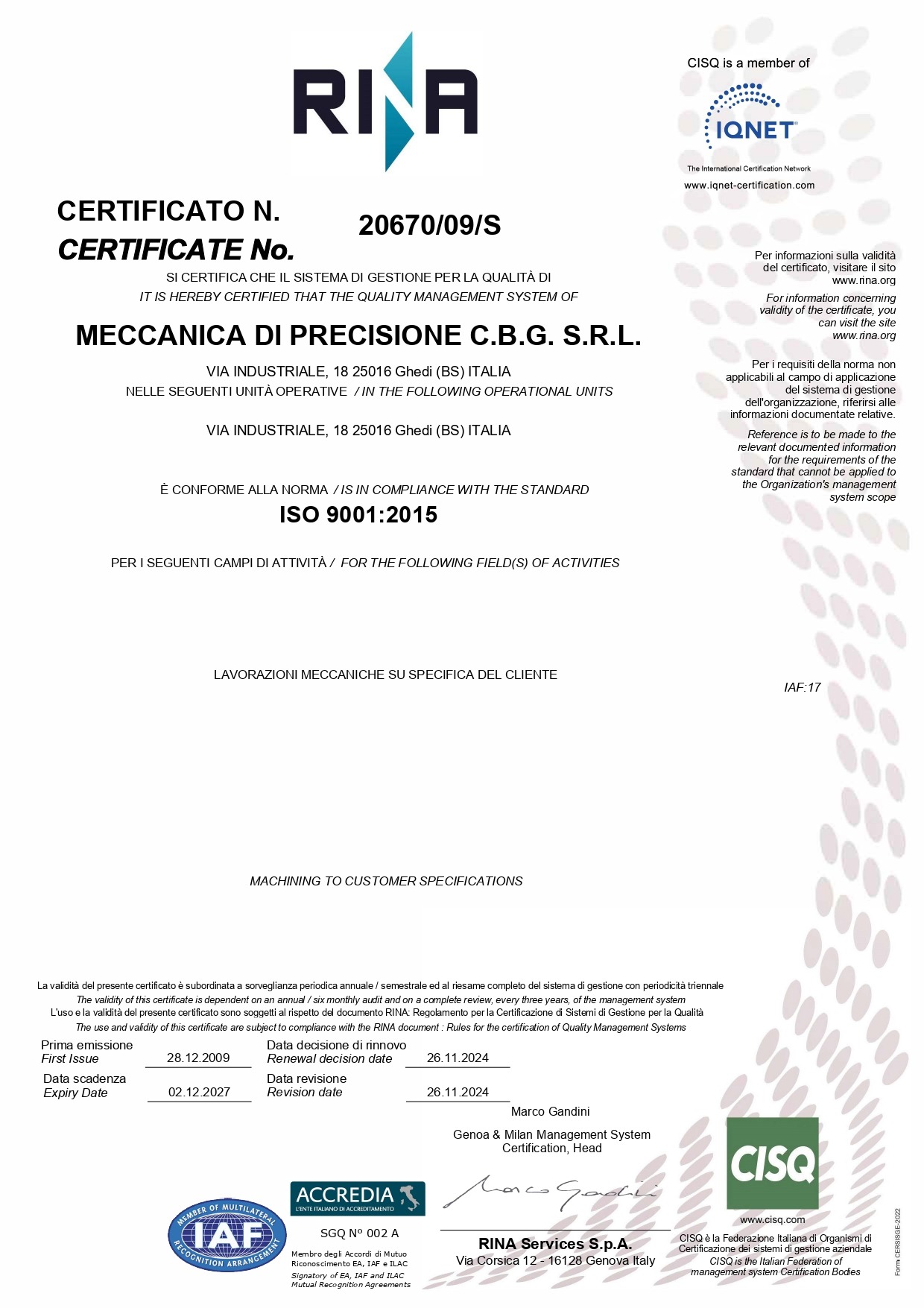 Meccanica di Precisione CBG srl P.IVA IT01292550173